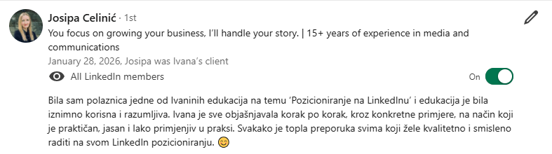 - 100% personalizirana usluga (rad na vašem LinkedIn profilu)