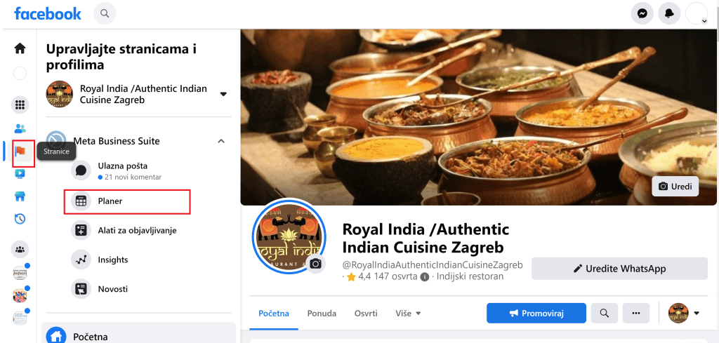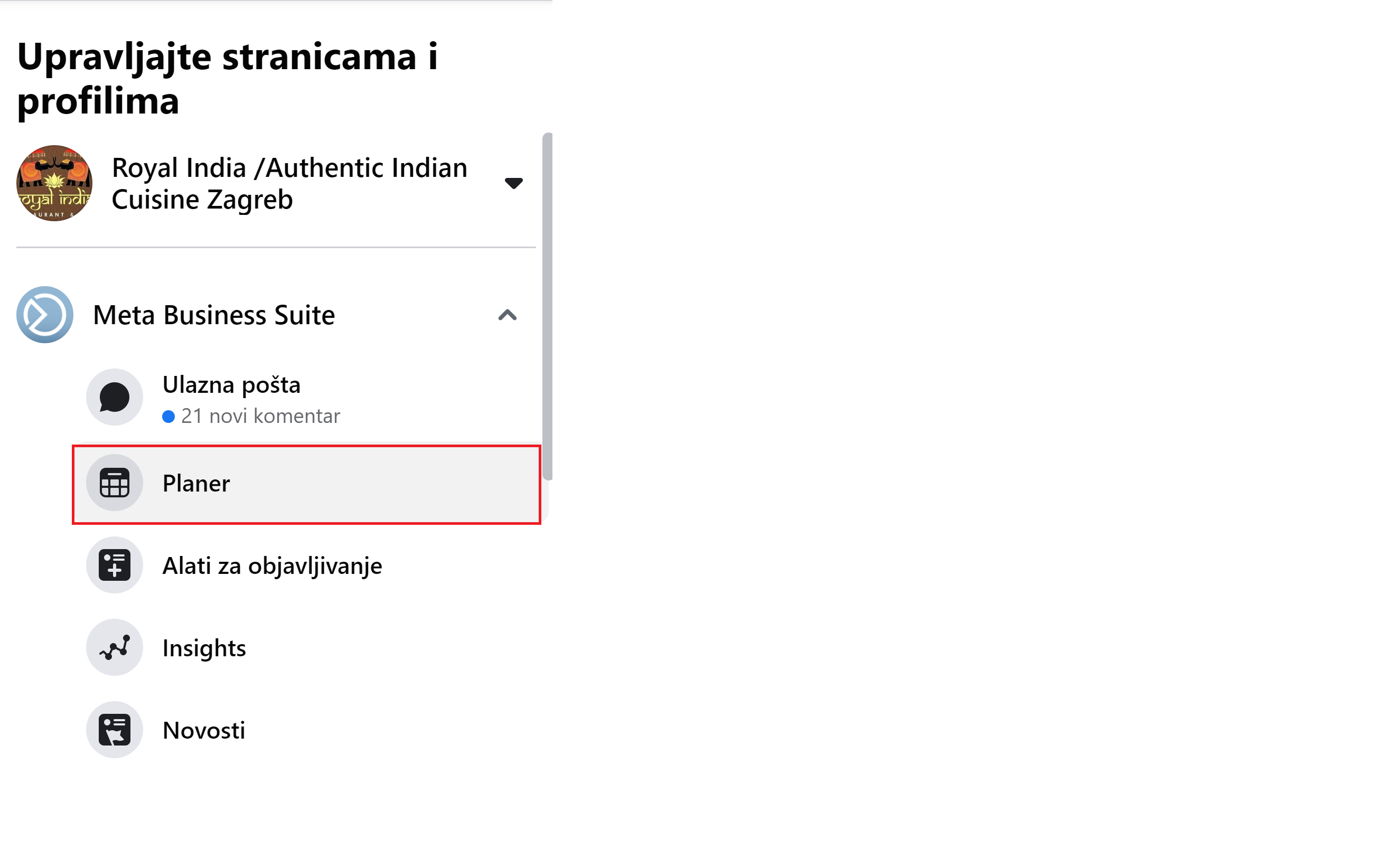 Kliknite na narančastu zastavicu i unutar Meta Business Suite alata odaberite planer Korak 2. U Meta Business Suite-u odaberemo “planer.”