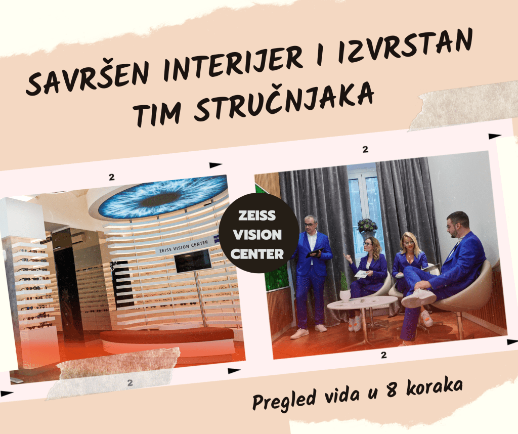 Dok svi drugi nude klasičan pregled vida u svojim poslovnicama, Zeiss Vision Center Zagreb odlučio se razlikovati od drugih po tome što u svojim poslovnicama nude pregled vida u 8 koraka.